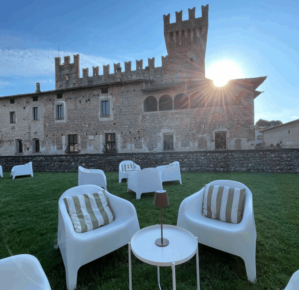 Overlooking the 15th-century Castle, Giardino degli Scudi is the perfect place to step away from daily hustle and bustle and enjoy a restorative break on the lawn, beneath the porticoes, or inside the historic stables—ideal for breakfasts, lunches, and aperitifs.