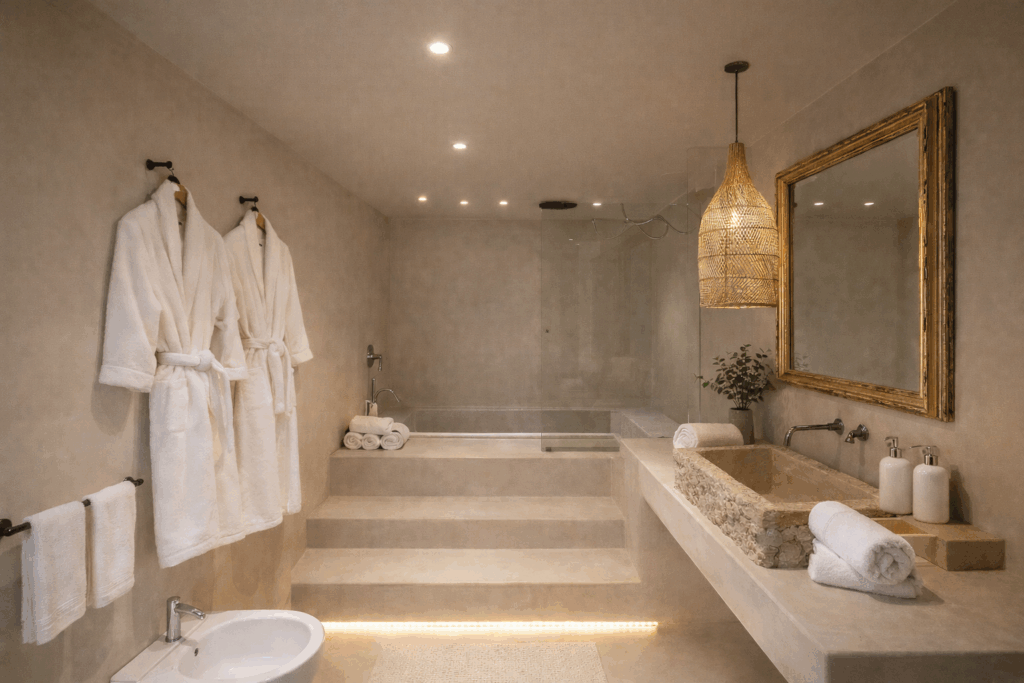 Nel cuore di ogni Suite trovi un ampio letto matrimoniale con materasso in seta e cotone e topper integrato, una grande vasca da bagno per momenti di puro relax, e accessori da bagno unici, tra cui oggetti in ferro battuto e pietre recuperate dal Castello. Inoltre, godrai di aria condizionata, Wi-Fi, caffè e tè in camera, e una colazione deliziosa, preparata da una rinomata pasticceria locale.